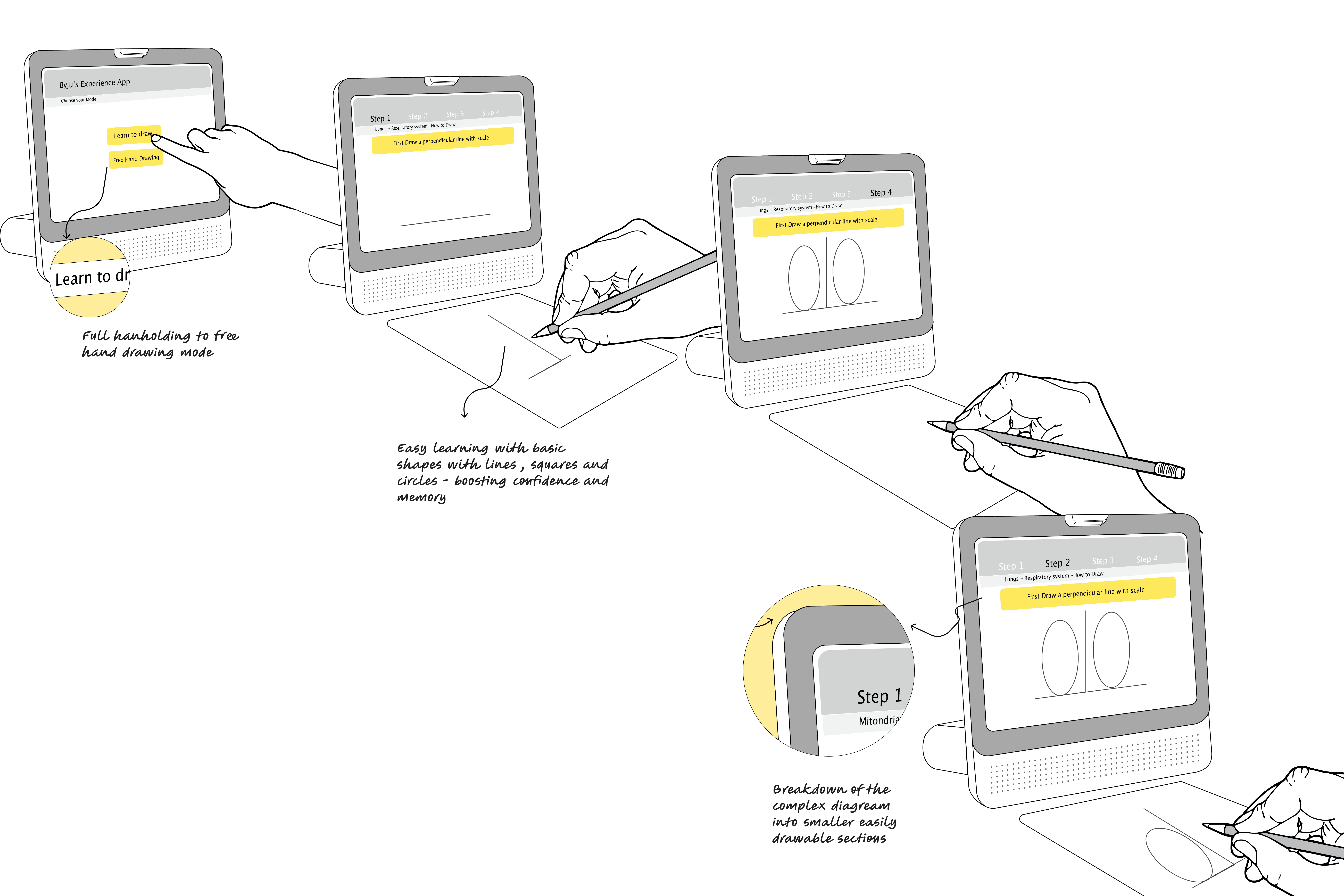 The Learn Station combines a physical tablet interface with real-time camera vision to create a feedback loop between hand-drawn diagrams and digital assessment. Students draw directly on paper while the system captures, analyzes, and validates their work instantly.