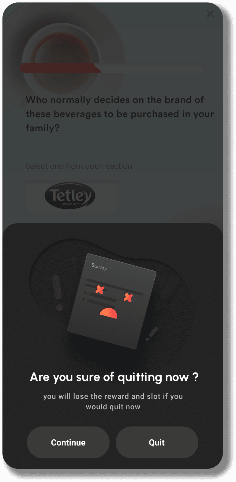 You've completed 3 of 5 questions. Exit now or continue to earn your reward.
